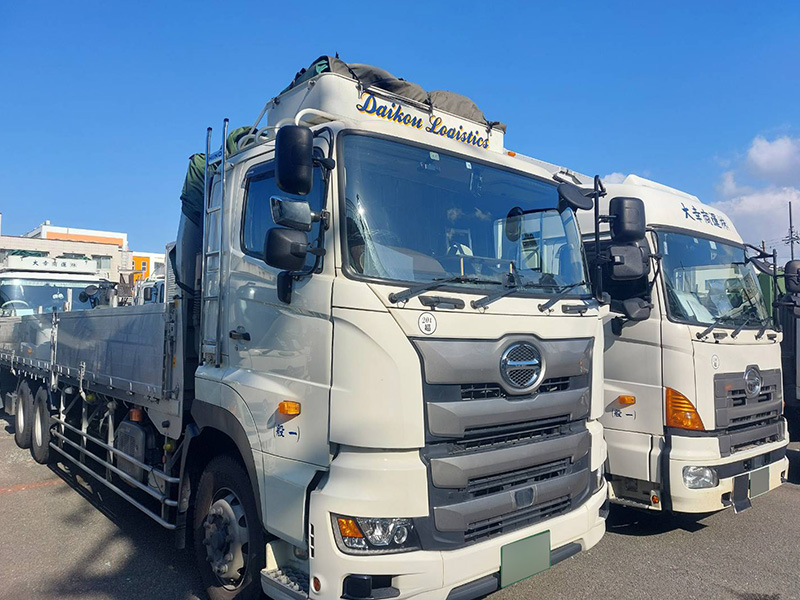 一般貨物から重量物まで幅広い荷物を、チャータ便、混載便、小口配送、専属便など、様々な形態に日々対応しています。28台のトラックを保有し、「とにかく急ぎ」「大型貨物」「少量の配送」など、それぞれのニーズに最適な1台で柔軟に対応します。自社トラック以外でもトレーラー、ユニック車なども信頼のある協力企業を活用して、ご希望のトラックをご用意します。