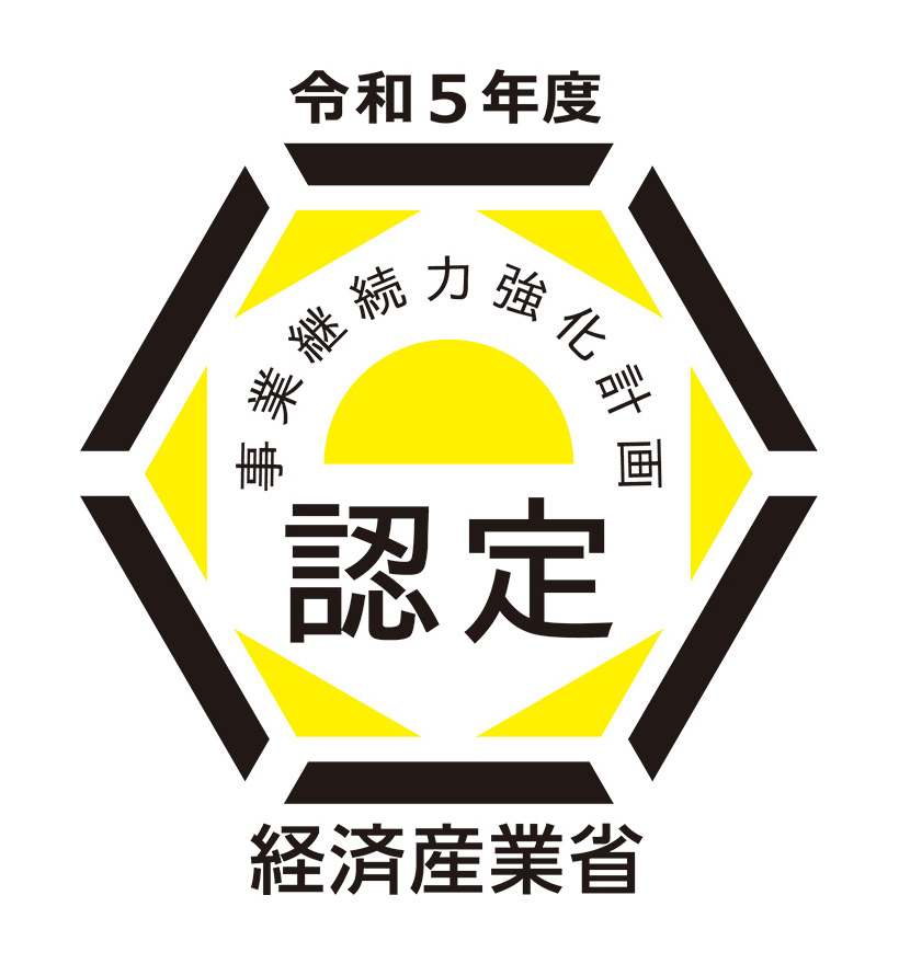 また、災害や緊急時でも事業を継続できる体制を構築する「事業継続力強化計画」にも取り組み、経済産業省より認定を受けています。